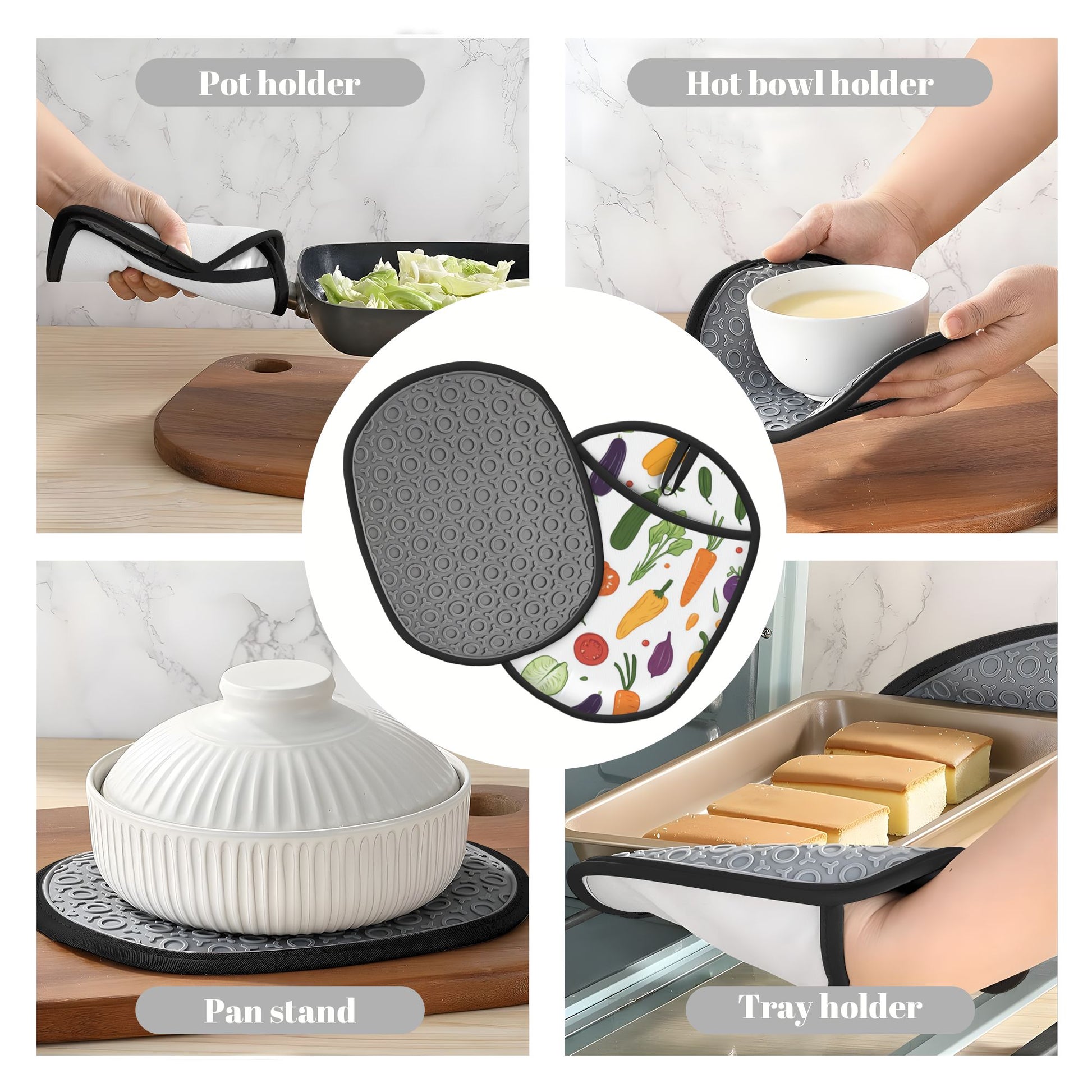 Cartoon Vegetable Pattern Silicone Oven Mitt & Trivet Pad – Heat Resistant Non-Slip Kitchen Pot Holder (9.4 x 7.5 in)