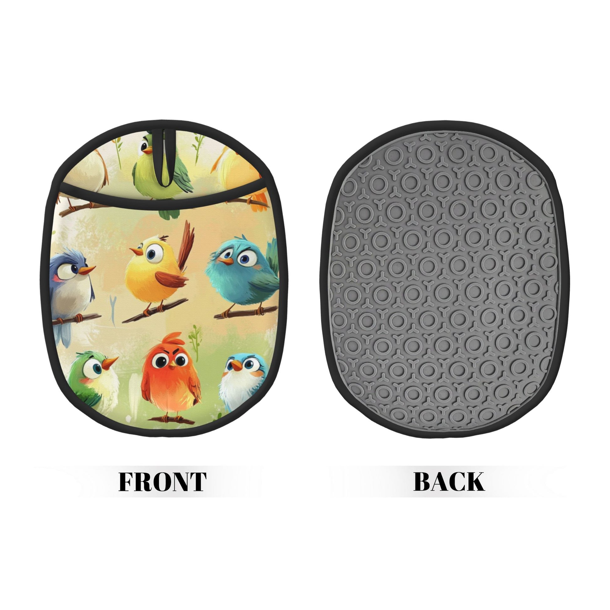Cute Cartoon Bird Pattern Silicone Oven Mitt & Trivet Pad – Heat Resistant, Non-Slip, Multi-Purpose Kitchen Accessory (9.4 x 7.5 in)
