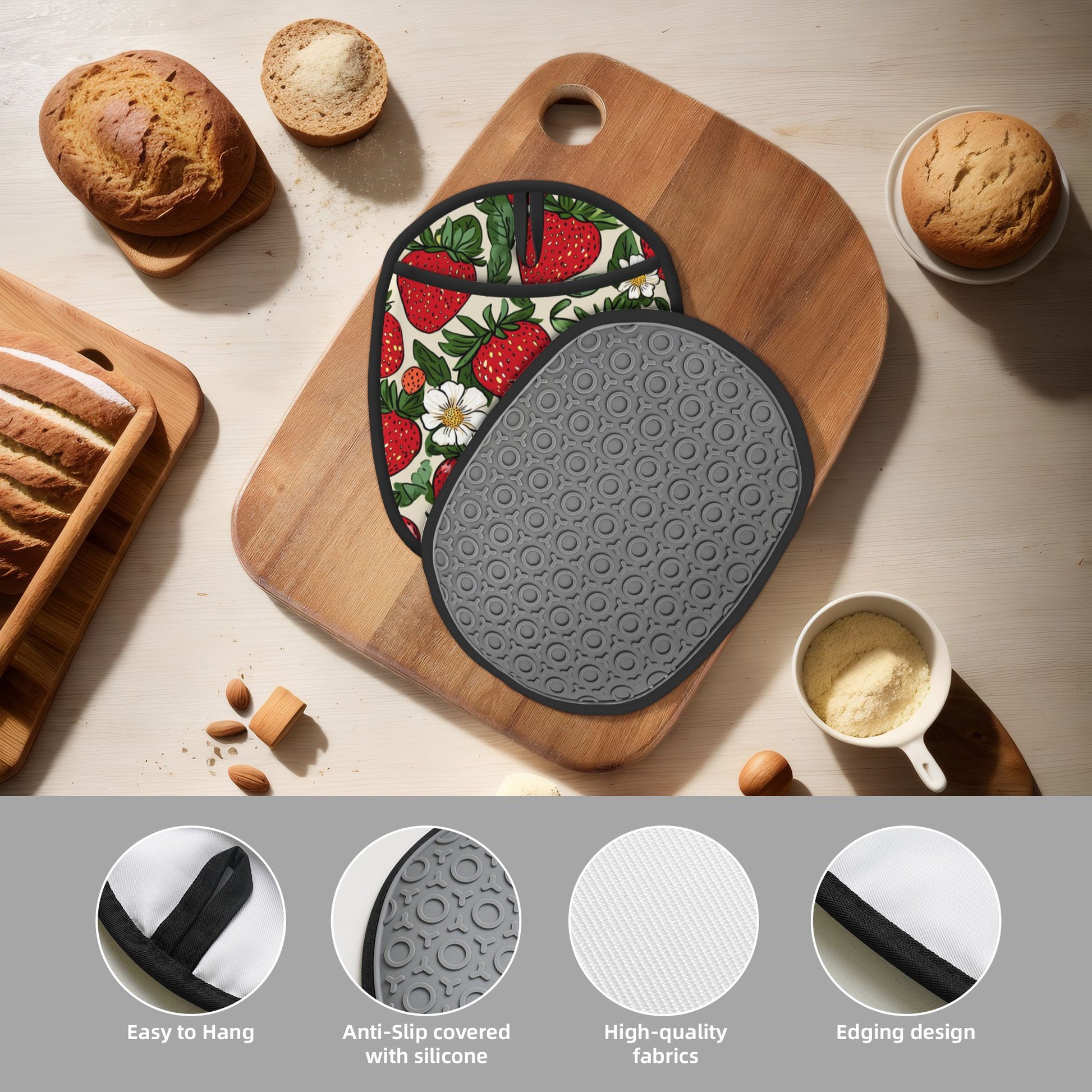 Brighten up your kitchen with this versatile strawberry-themed silicone oven mat. Designed to combine function with flair, it serves as a heat-resistant pad, anti-scalding pot holder, anti-slip oven mitt, and stylish table accent all in one.